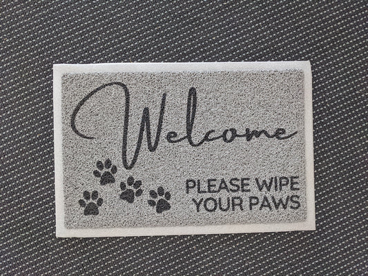 Welcome Please Wipe your paws doormat Grey looped