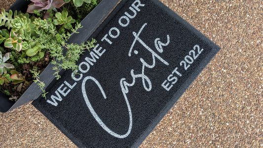 Welcome to our casita personalised year, black doormat