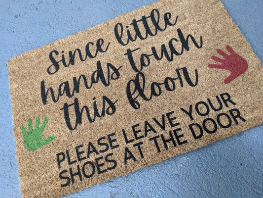 Since little hands touch this floor doormat with handprints - coir